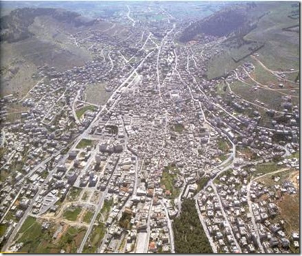 A photo for the central part of Nablus looking toward the east taken from AIR , in the year 1994 , Source : http://www.nakbaonline.org/images/LandBtwn/Nablus-1994.jpg